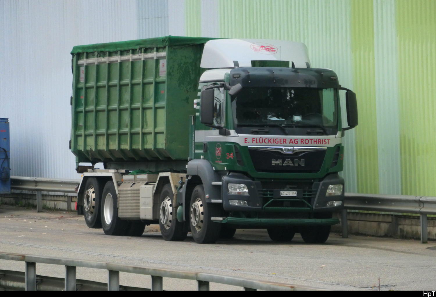 MAN mit Pritschenaufbau unterwegs in der Stadt Aarau am 01.10.2025