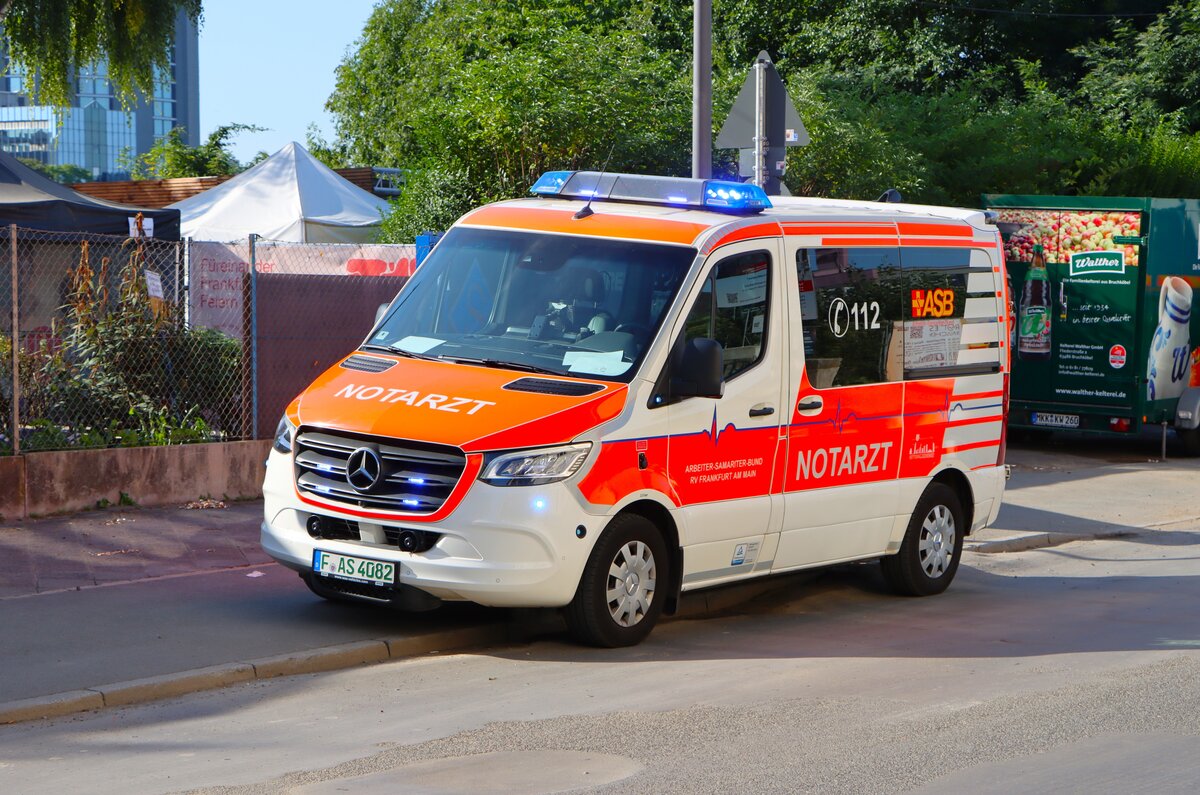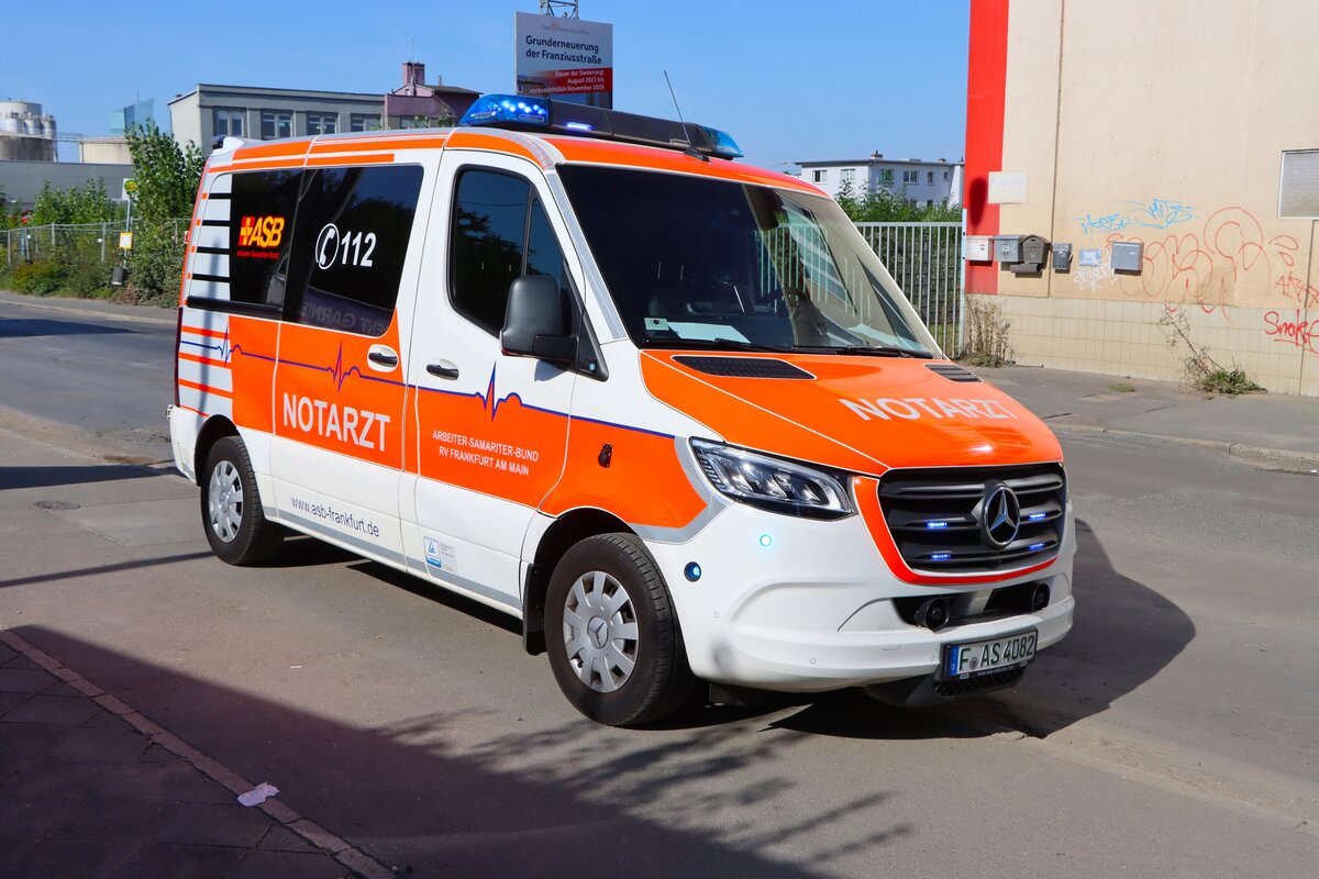 ASB Frankfurt Mercedes Benz Sprinter 317 NEF bei der Katastrophenschutzübung Frankopia 2025 im Frankfurter Osthafen am 20.09.25