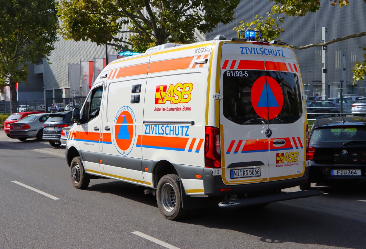 ASB Frankfurt Mercedes Benz Sprinter KTW der MTF bei der Katastrophenschutzübung Frankopia 2025 im Frankfurter Osthafen am 20.09.25