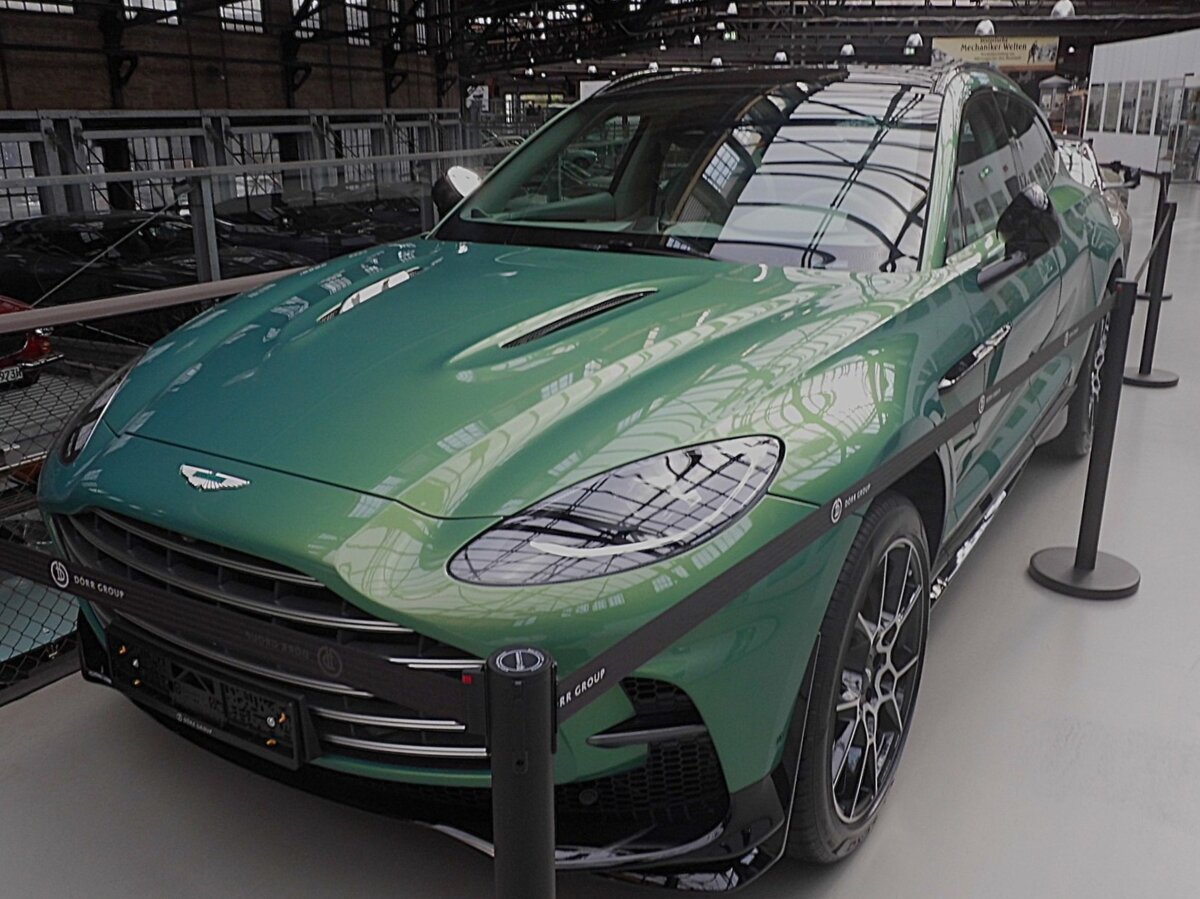 Aston Martin DBX707 im Farbton chiltern green. Laut Aussage des Herstellers ist der DBX707 der leistungsstärkste SUV der Welt. Angetrieben wird dieser SUV von einem V8-Motor mit einem Hubraum von 3982 cm³ und einer Leistung von 707 PS. Die Höchstgeschwindigkeit wird mit 310 km/h angegeben. Classic Remise Düsseldorf am 03.10.2025.