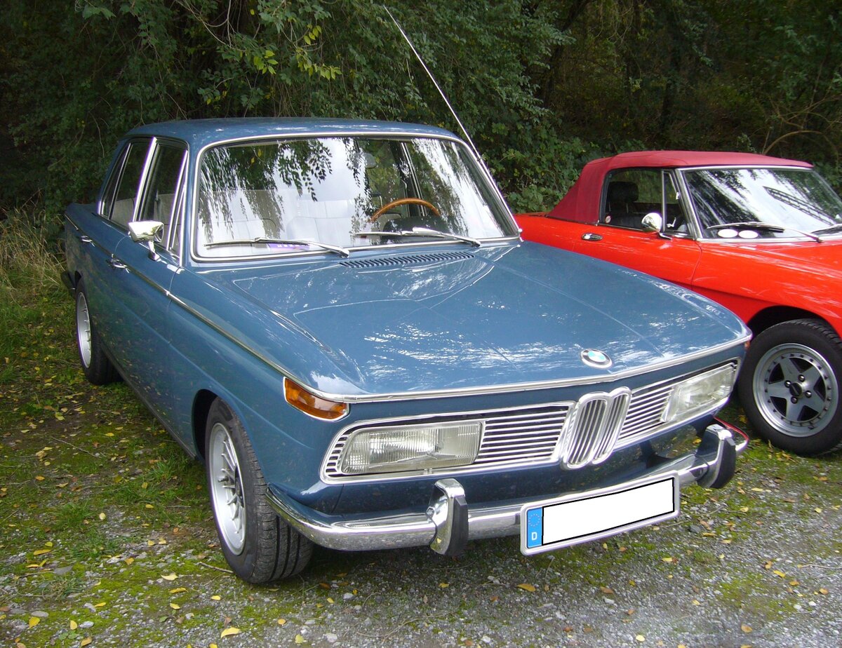 BMW 1800, gebaut von 1963 bis 1972. Der BMW 1800 war, das am längsten gebaute Modell, der sogenannten "Neuen Klasse" von BMW. Der Vierzylinderreihenmotor hat serienmäßig einen Hubraum von 1773 cm³ und leistet 90 PS. Bei diesem Wagen dürfte es sich um ein Fahrzeug aus dem Modelljahr 1971 handeln, da er bereits mit den ab dann verbauten, rechteckigen, Frontscheinwerfern ausgerüstet ist. Oldtimertreffen am Theater an der Niebu(h)rg am 19.10.2025 in Oberhausen/Rheinland.