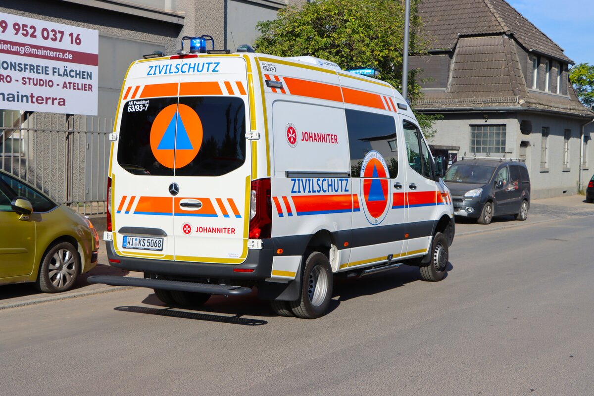 Die Joahnniter Mercedes Benz Sprinter KTW der MTF bei der Katastrophenschutzübung Frankopia 2025 im Frankfurter Osthafen am 20.09.25