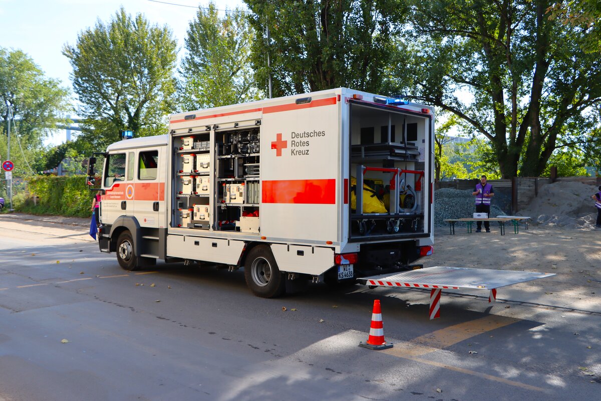 DRK Mercedes Benz Vito Betreuungsfahrzeug und MAN TGM GW-San bei der Katastrophenschutzübung Frankopia 2025 im Frankfurter Osthafen am 20.09.25