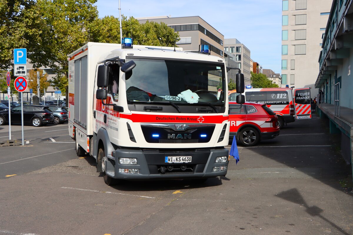 DRK MAN TGM GW-San bei der Katastrophenschutzübung Frankopia 2025 im Frankfurter Osthafen am 20.09.25