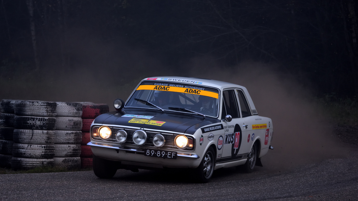 Ford Cortina GT MK2, Meijers Leon und Korsten Oscar, Vorausfahrzeug der ADAC Rallye Köln-Ahrweiler. Demo am 9.11.2024. Parkplatz Kurs Müllenbach P3 des Nürburgrings. Kurz vor Abbruch wegen Nebel.