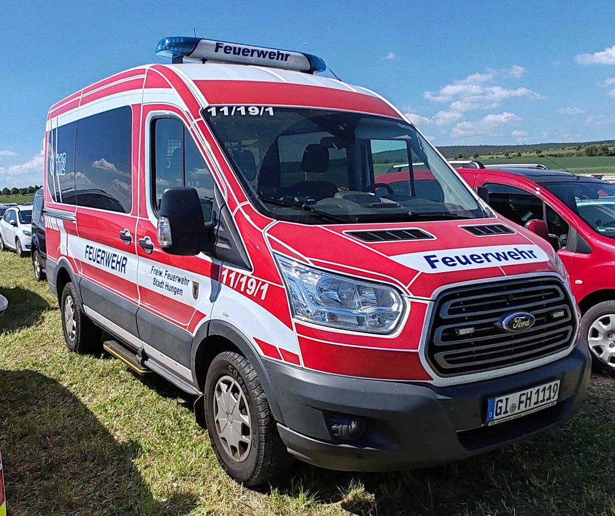 =Ford Transit als MTW der Feuerwehr Hungen, abgestellt auf dem Parkplatz der 2025er Rettmobil in Fulda