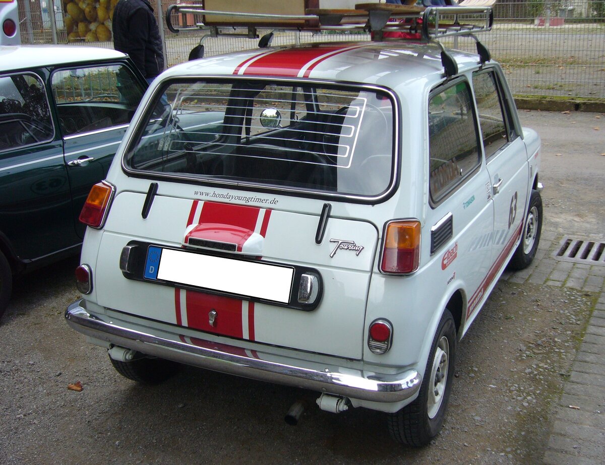 Heckansicht eines Honda N600. Oldtimertreffen am Theater an der Niebu(h)rg am 19.10.2025 in Oberhausen/Rheinland.