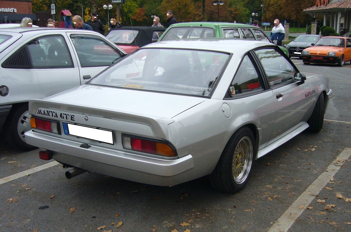 Heckansicht eines Opel Manta B 2.0E GT/E. Oldtimertreffen am Cafe del Sol in Gelsenkirchen am 12.10.2025.