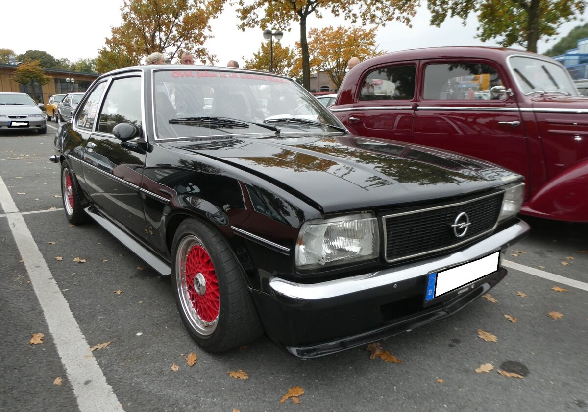 Opel Ascona B in der Karosserieversion zweitürige Limousine. Der glattflächige Ascona B wurde auf der IAA des Jahres 1975 vorgestellt. Er war als zwei- und viertürige Limousine lieferbar. Das Modell war mit etlichen Vierzylinderreihenmotoren von 1.2l bis 2.0l Hubraum und sogar einem Dieselmotor lieferbar. 1981 wurde die Produktion zu Gunsten des Nachfolgers Ascona C eingestellt. Oldtimertreffen am Cafe del Sol in Gelsenkirchen am 12.10.2025.