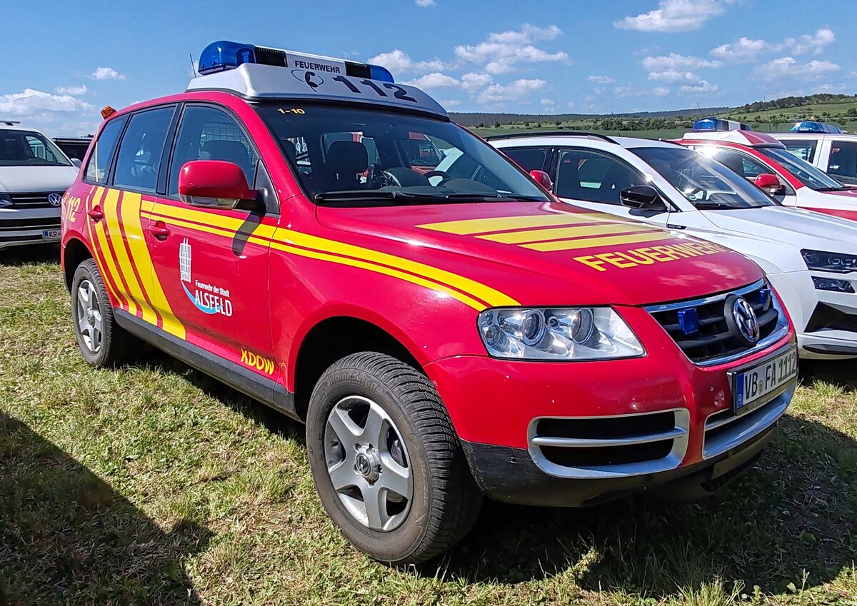 =VW Touareg 3.0 als Kommandowagen der Feuerwehr von ALSFELD, abgestellt auf dem Parkplatz der 2025er Rettmobil in Fulda