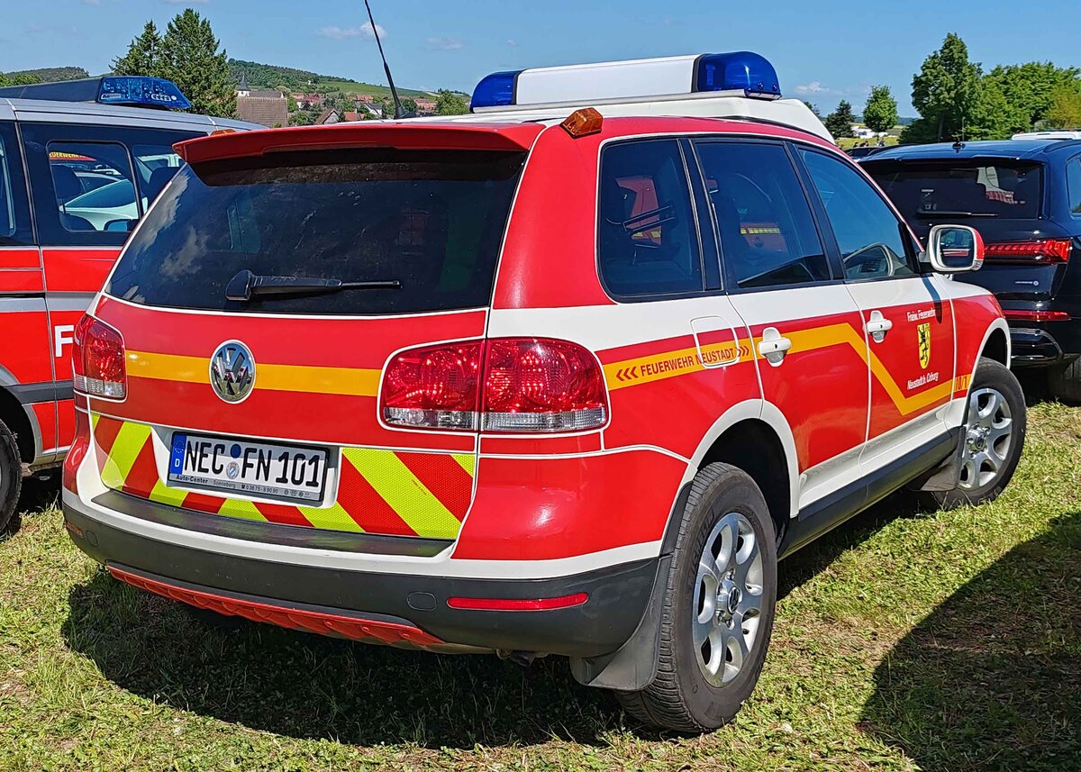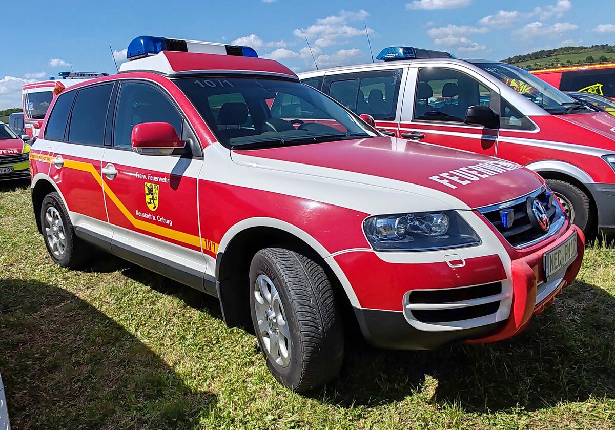 =VW Touareg als Kommandowagen der Feuerwehr NEUSTADT bei Coburg, abgestellt auf dem Parkplatz der 2025er Rettmobil in Fulda