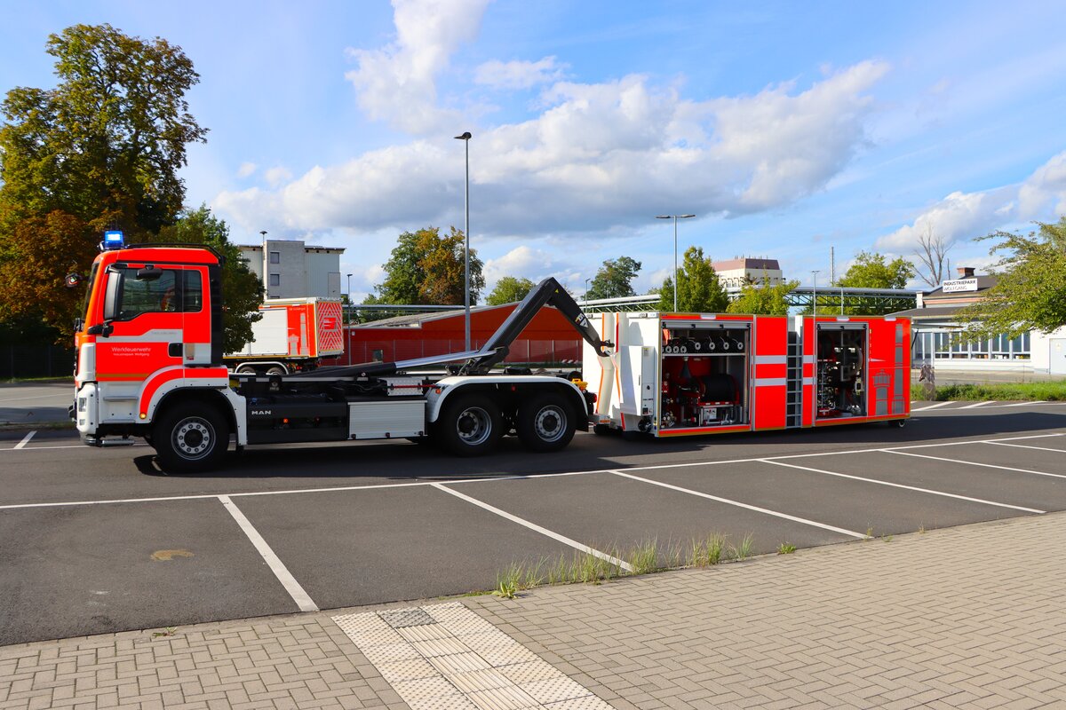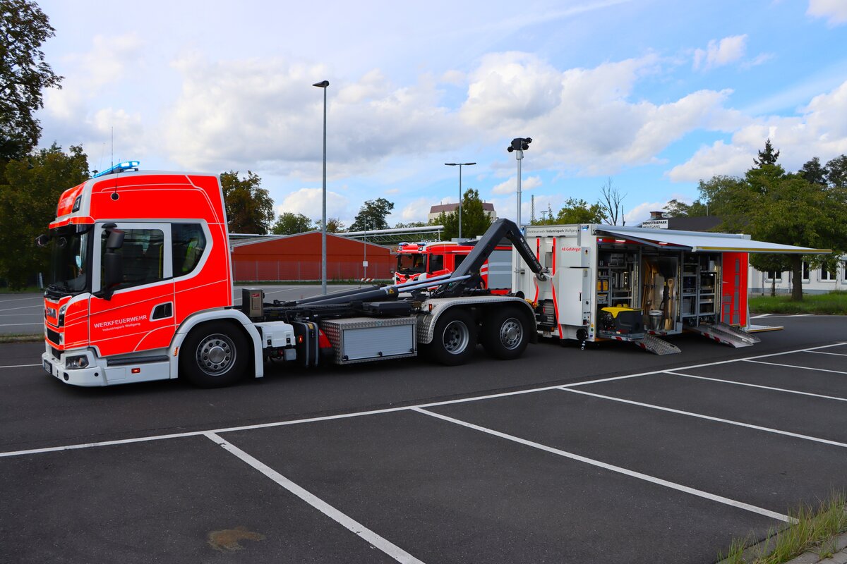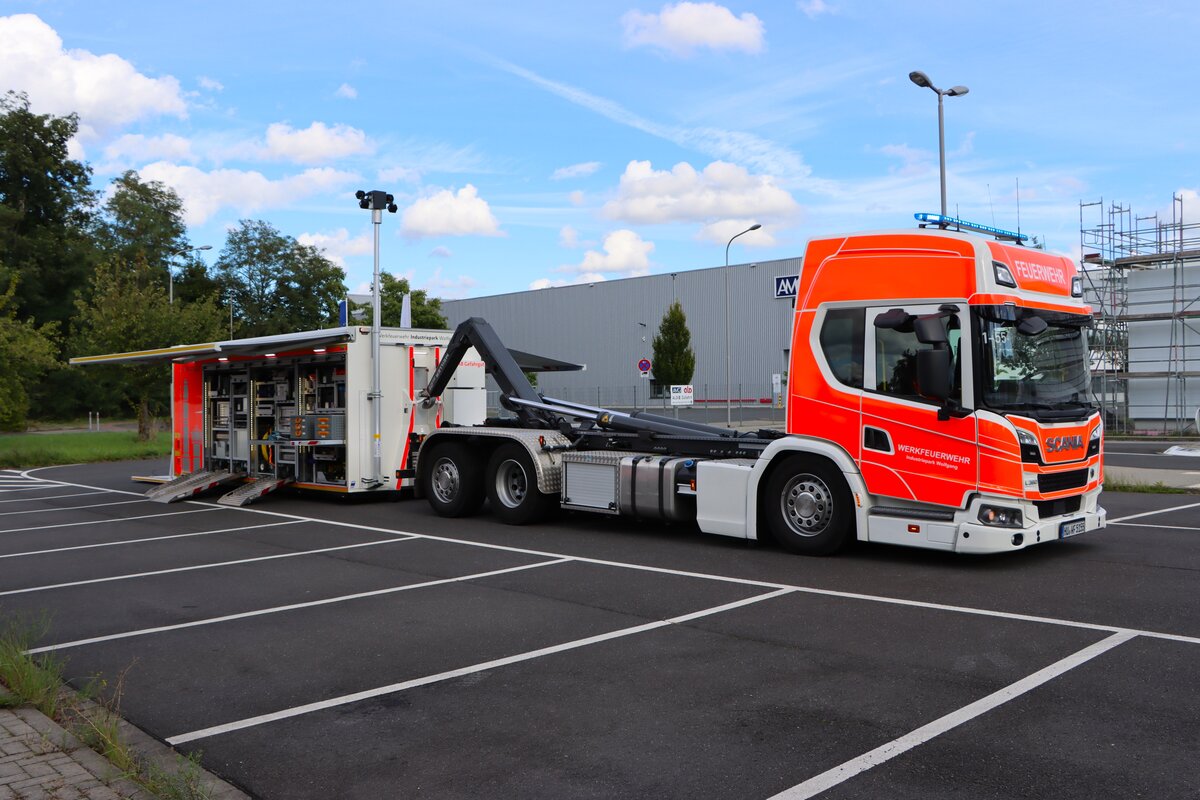Werkfeuerwehr Industriepark Hanau Wolfgang Scania L360 WLF mit AB-Gefahrgut von GSF (Florian IPW 01-55-1) am 14.09.25 bei einen Fototermin. Danke für das tolle Shooting