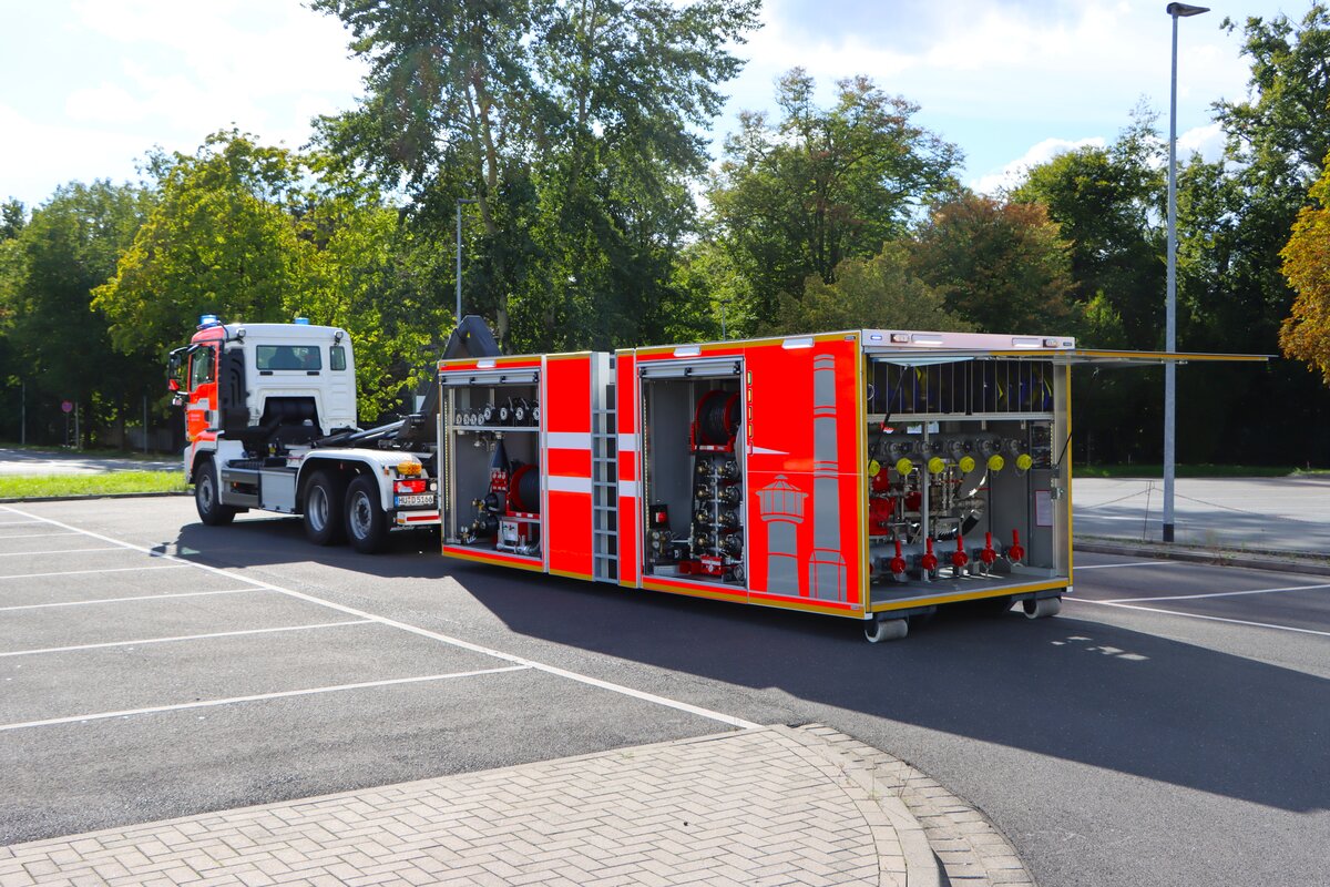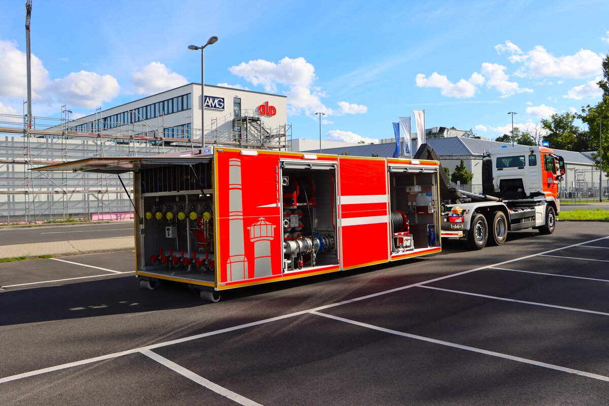 Feuerwehr Frankfurt am Main Griesheim Mercedes Benz Atego 1428 Lentner LF20 bei der Katastrophenschutzübung Frankopia 2025 im Frankfurter Osthafen am 20.09.25
