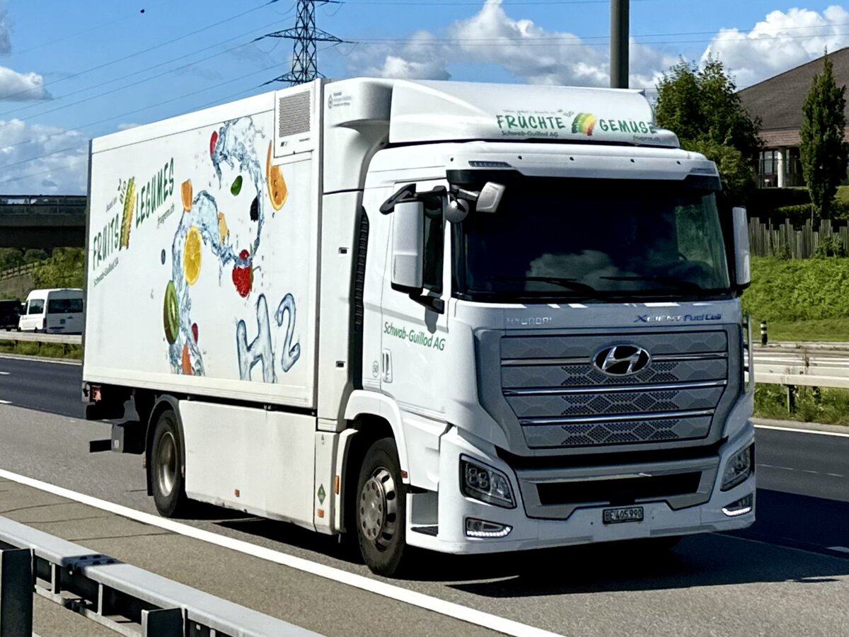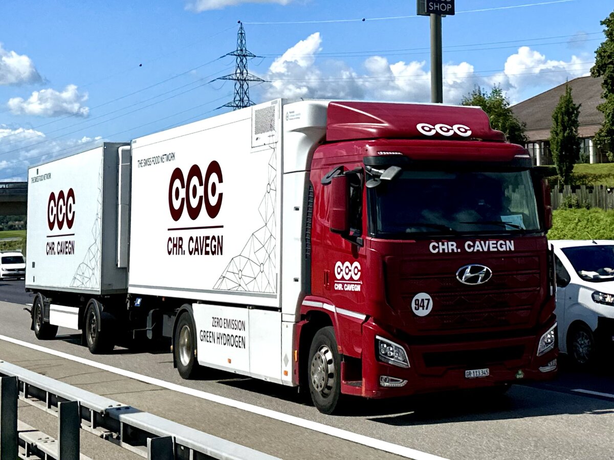Ein Hyundai Fuel Cell Hängerzug von CHR. Cavegn am 5.9.25 beim Grauholz.