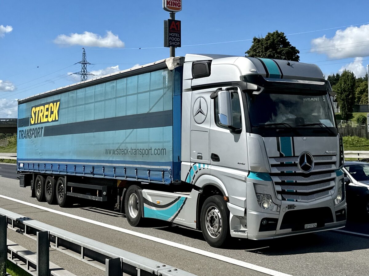 Ein MB Actros Sattelzug von Streck Transporte am 5.9.25 beim Grauholz.