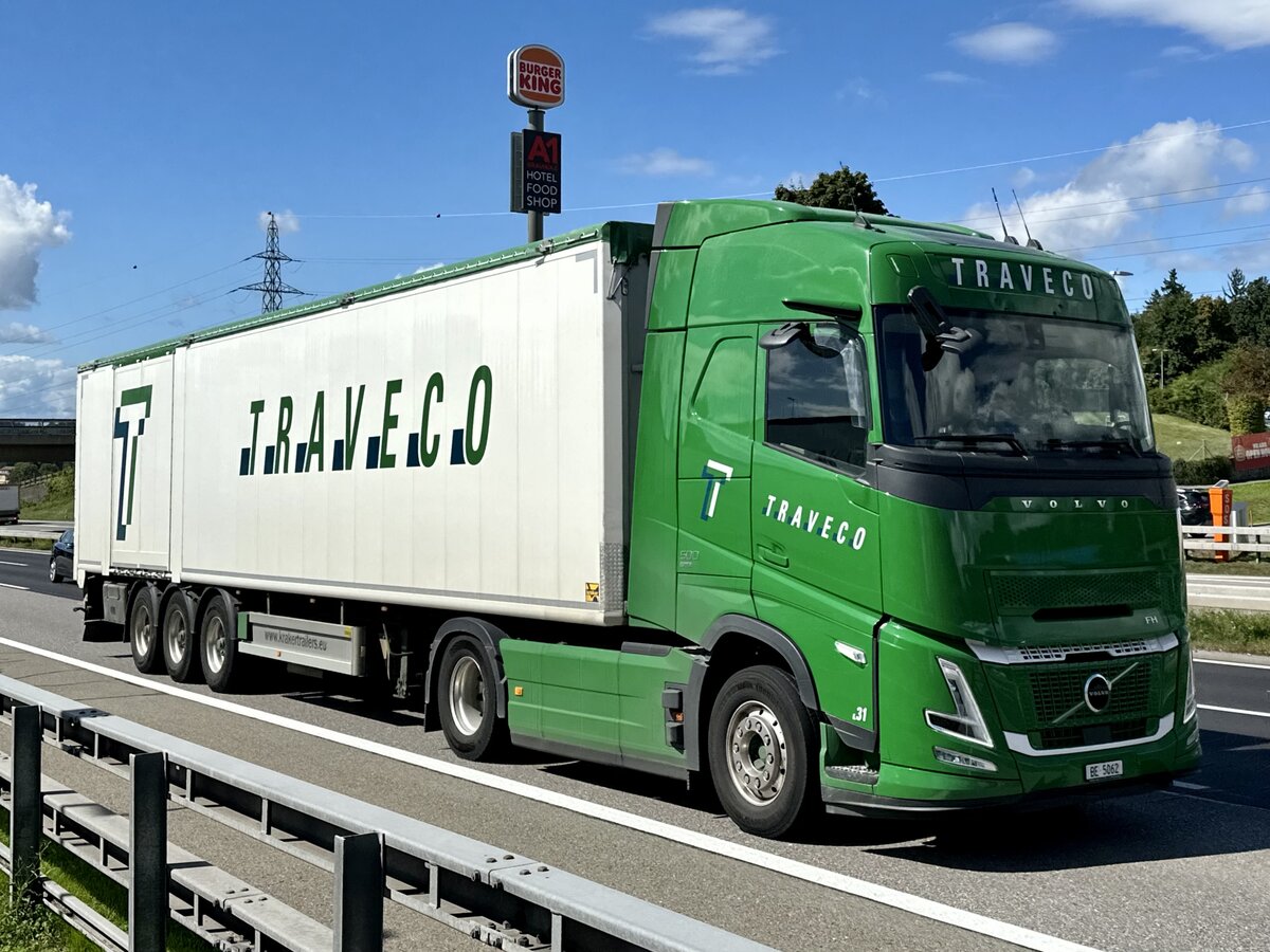 Ein Volvo FH Aero Sattelzug von Traveco am 5.9.25 beim Grauholz.