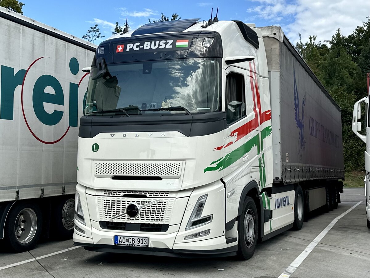 Ein Volvo FH AeroSattelzug aus Ungarn am 4.9.25 auf der Rastsätte Grauholz.