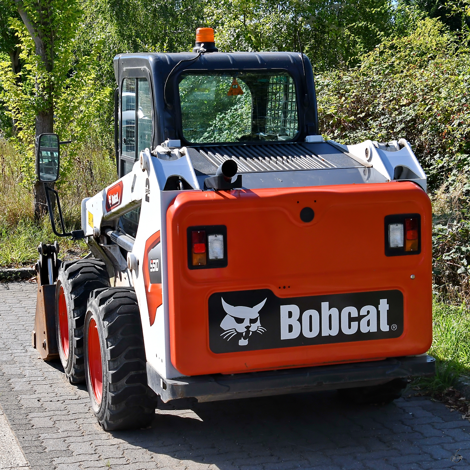 Der Hintern eines Bobcat S510 Kompaktladers, so gesehen im September 2025 in einem Hattinger Gewerbegebiet.