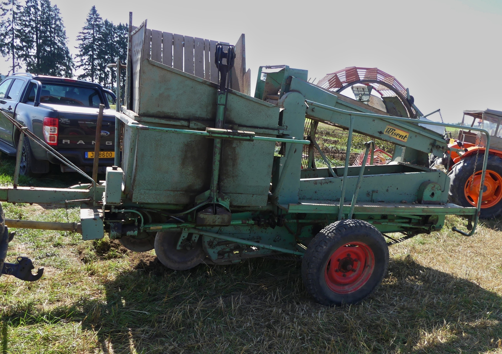 Kartoffelschüttelroder hängt zur Vorführung an einem Traktor beim Gromperefest in Binsfeld. 07.09.2025