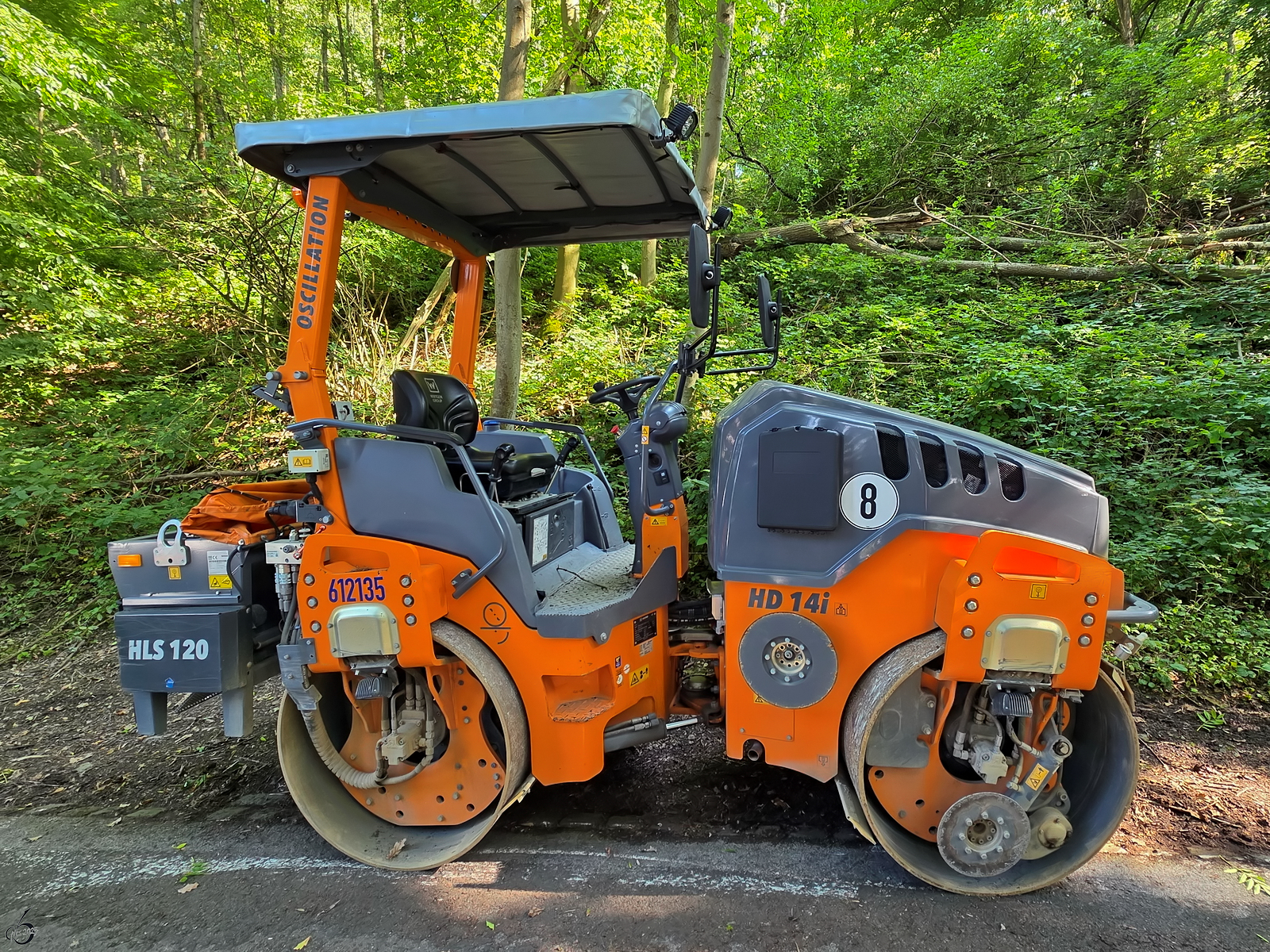 Diese Tandemwalze Hamm HD 14i war Anfang August 2025 in Hattingen zu sehen.