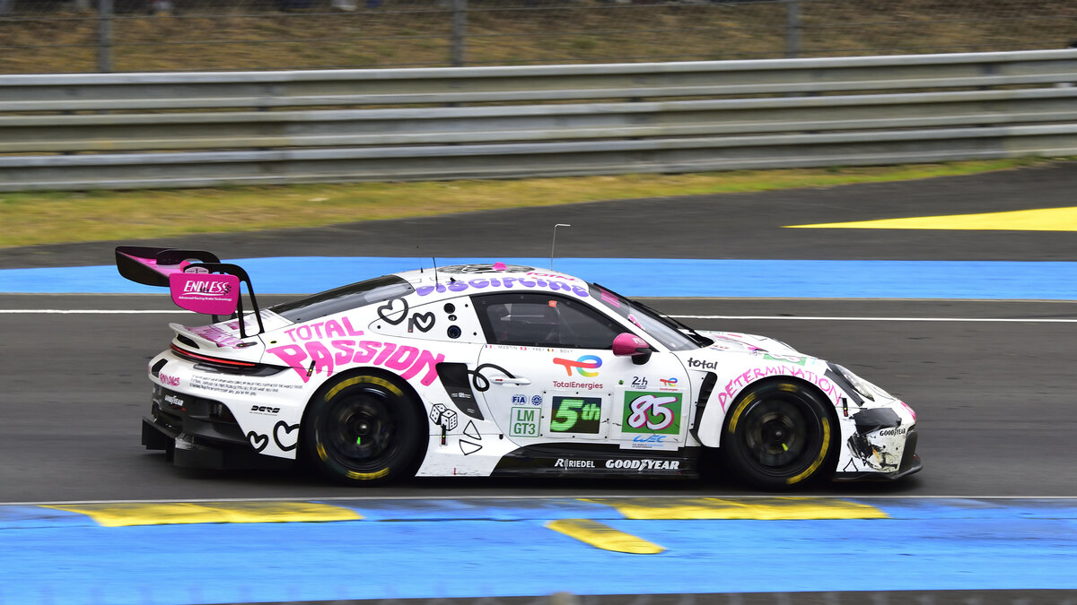 85 Porsche 911 GT3 R LMGT3, Einsatzteam: Manthey, Fahrerin die Iron Dames: Célia Martin, Rahel Frey & Sarah Bovy. 93. 24h von Le Mans, Aufnahme am 14.06.2025
