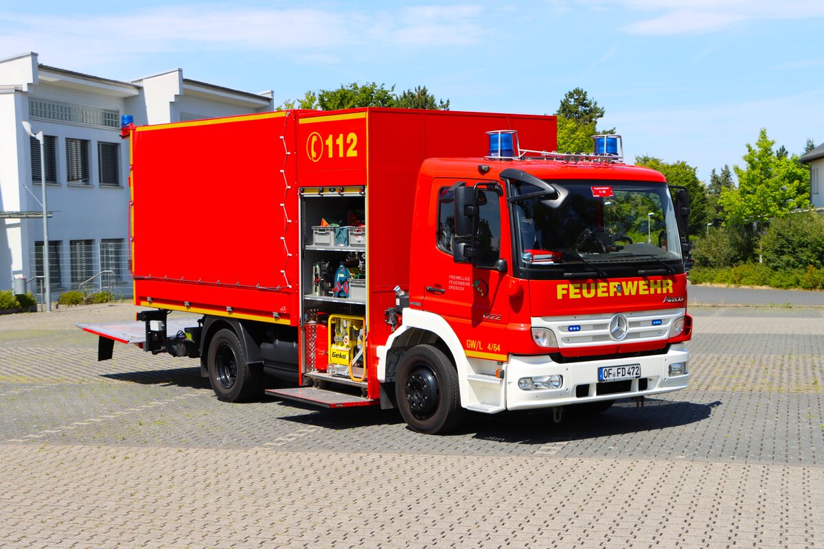 Feuerwehr Dreieich Sprendlingen Mercedes Benz Atego GW-L (Florian Dreieich 4-64-1) am 05.07.25 bei einen Fototermin. Danke für das tolle Shooting