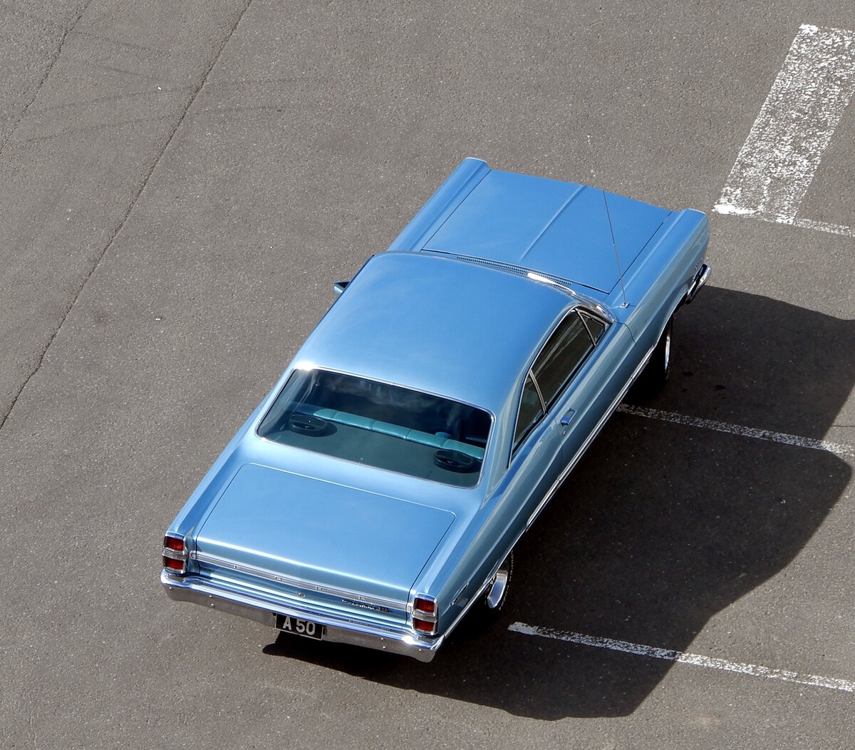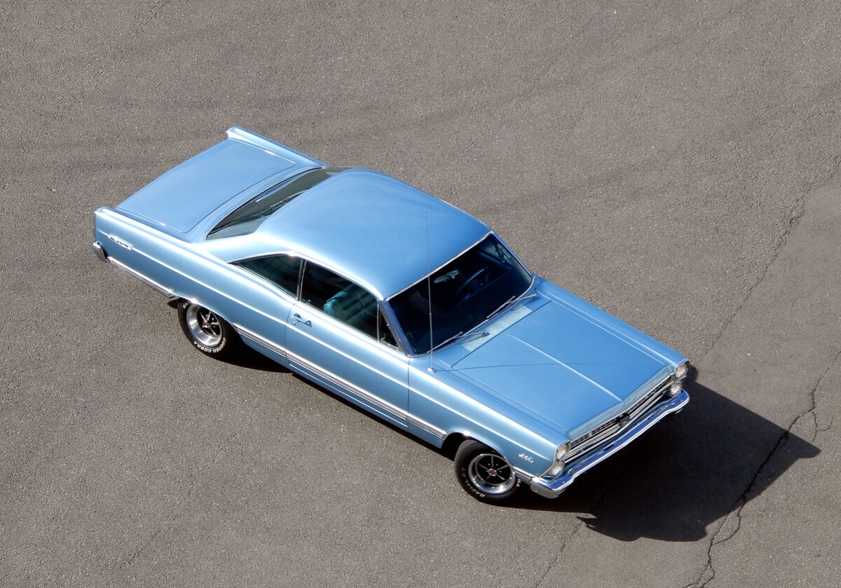 Ford Galaxie 500 Coupe aus dem Jahr 1967. Das Volumenmodell "Galaxie" wird seit 1959 vermarktet. Im Modelljahr 1967 war der Galaxie als viertürige Limousine, Cabriolet und als Hardtop-Coupe (Foto) lieferbar. Alleine vom Toppmodell Galaxie 500 setzt Ford in diesem Modelljahr 197.388 Fahrzeuge ab (alle Karosserieversionen zusammen gerechnet). Ein solches Coupe war ab US$ 2755,00 zu haben. Die meisten Kunden wählten den 427 cui (6997 cm³) V8-Motor mit einer Leistung von 425 PS. 11. Oldtimertreffen des AMC Duisburg auf dem Parkplatz des Landschaftspark Duisburg Nord am 24.08.2025.