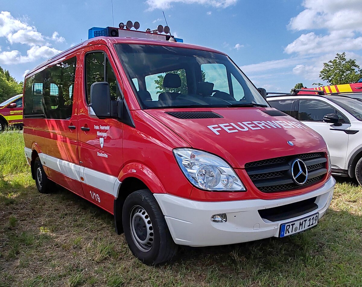 =MB Sprinter als Mehrzweckfahrzeug der Feuerwehr MÜNSINGEN, abgestellt auf dem Parkplatz der 2025er Rettmobil in Fulda