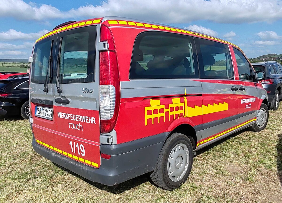 =MB Vito als MTW der Werkfeuerwehr der Firma RAUCH, abgestellt auf dem Parkplatz der 2025er Rettmobil in Fulda