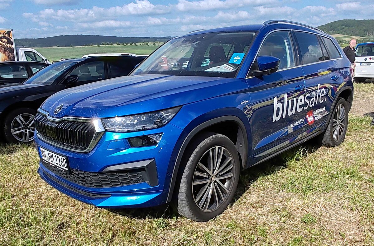 =Skoda Kodiaq der Firma BLUE SAFE, gesehen auf dem Parkplatz der 2025er RettMobil in Fulda