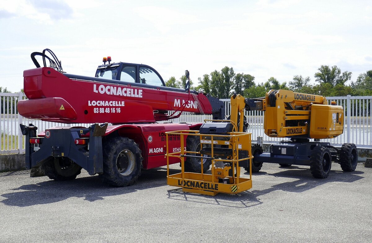 zwei Arbeitsbühnen, auf einem Parkplatz im Elsaß, Aug.2025