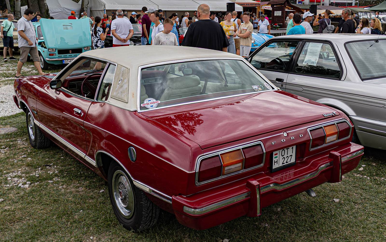 Hier ist ein Ford Mustang Mk2 als zweitürer Coupé zu sehen. Foto: Treffen für Hobby- und Veteranenfahrzeuge in Szántód (am Plattensee) am 26.07.2025 (Das Auto ist ein Ausstellungsobjekt des Retro Museum in Balatonfőkajár).