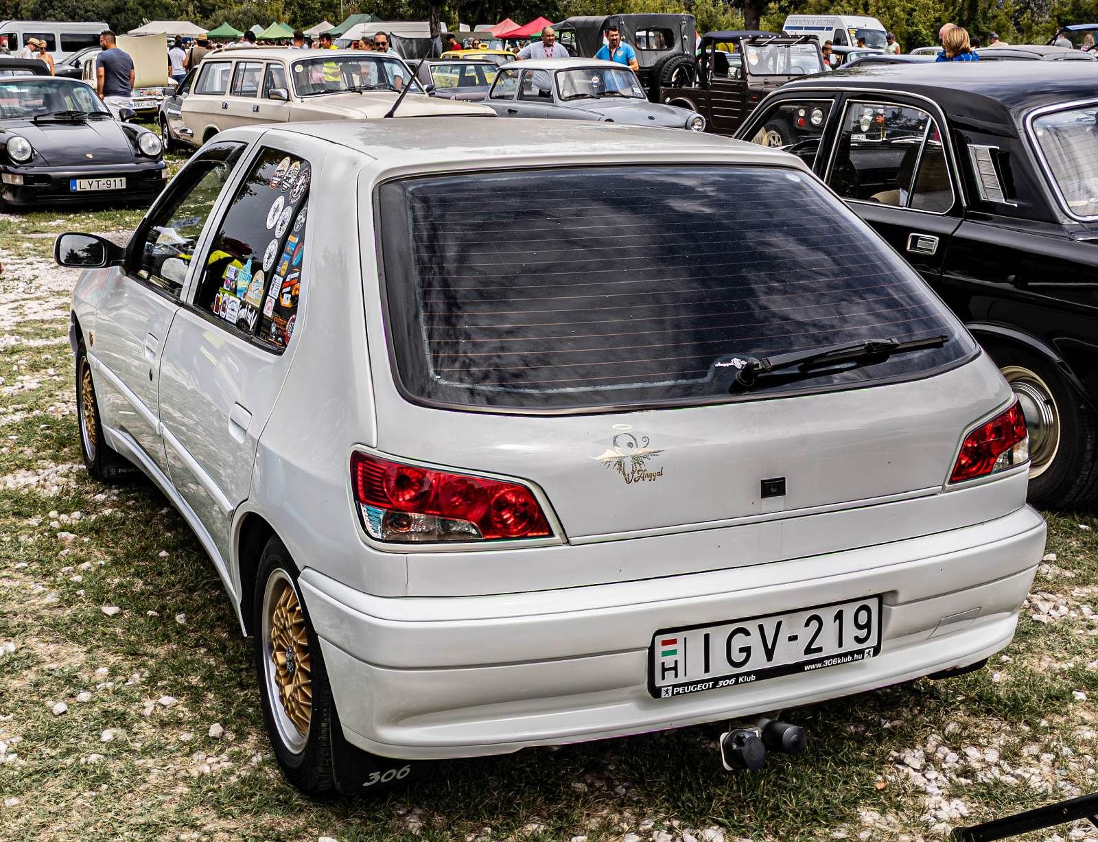 Rückansicht: optisch getunter Peugeot 306. Foto: Treffen für Hobby- und Veteranenfahrzeuge in Szántód (am Plattensee) am 26.07.2025.