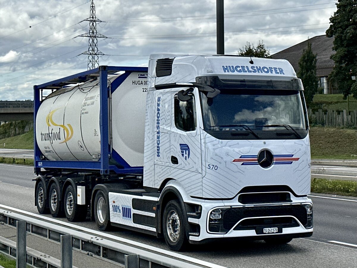 Ein MB Actros 600 vom Hugelshofer mit einem Tankcontainer am 11.9.25 beim Grauholz.