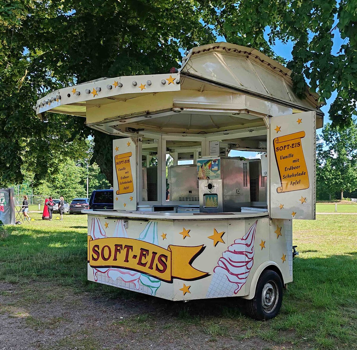 =Verkaufsanhänger für Soft-Eis steht beim US-CAR-TREFFEN in Bardowick, 06-2024