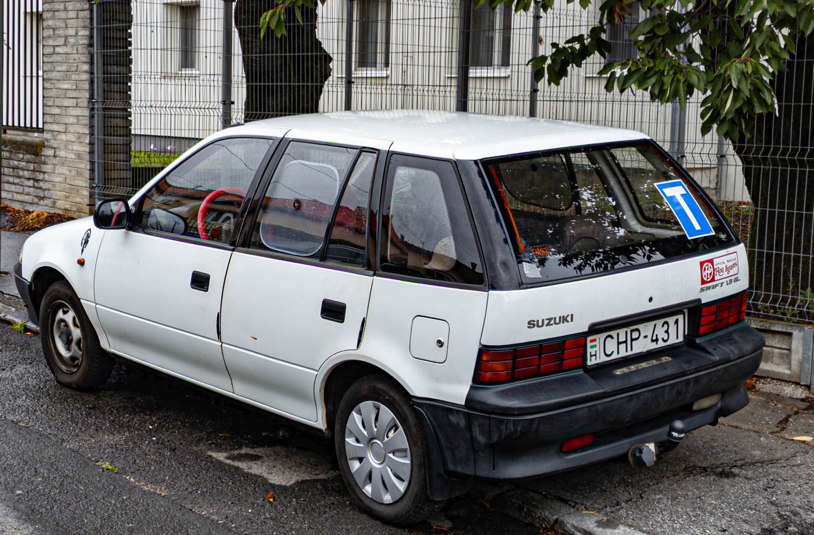 Dieser Suzuki Swift Mk2 pre-Facelift ist noch aus japanischer Produktion (die C-Säule ist schwarz und das Armaturenbrett ist abweichend von den späteren jahrgänge). Foto: 08.2025.