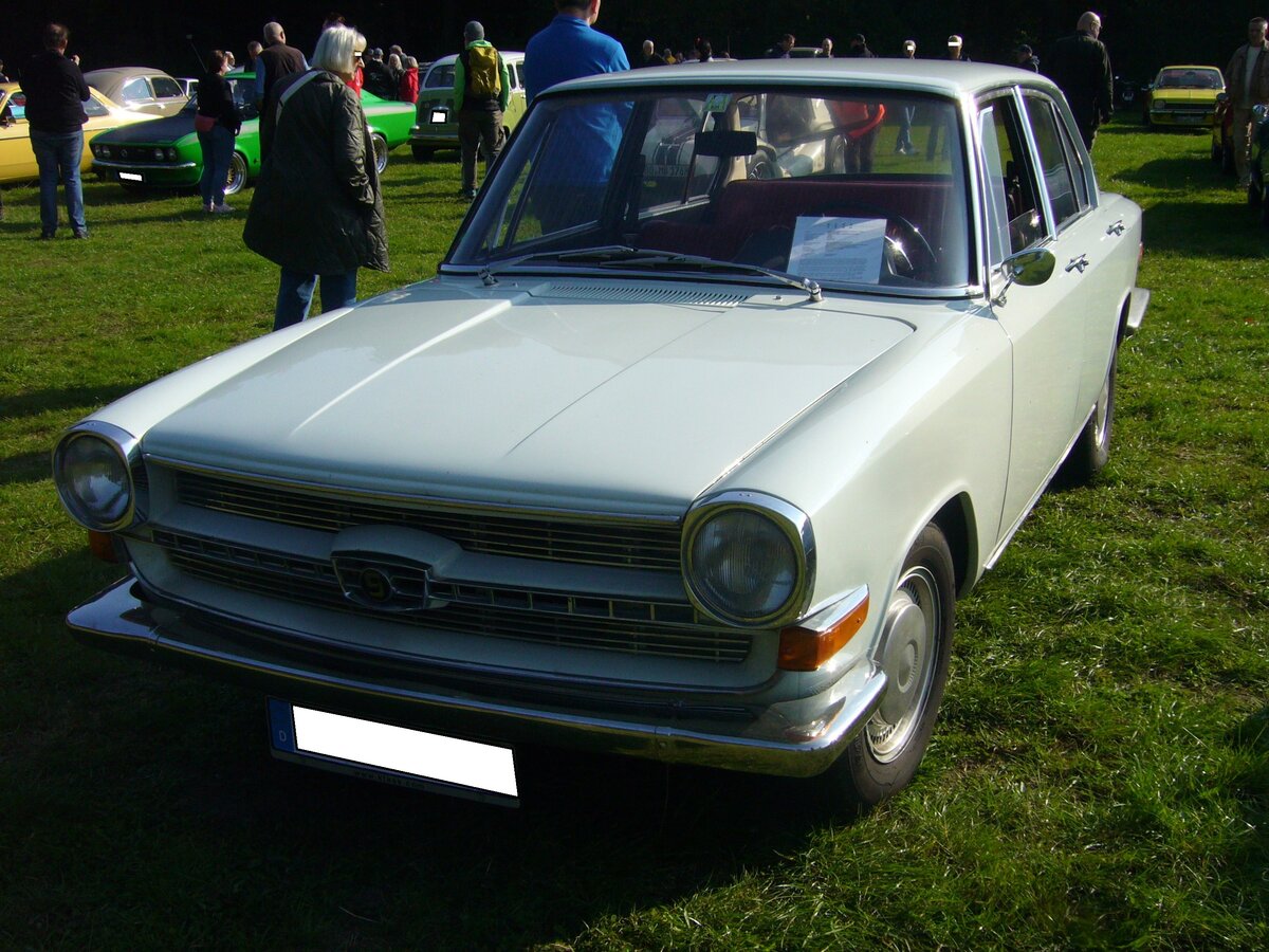 Profilansicht eines Glas 1700 Limousine im Farbton astralweiß. Oldtimertreffen auf dem Gelände des Bikertreffs Mutter Vogel in Marl am 28.09.2025.