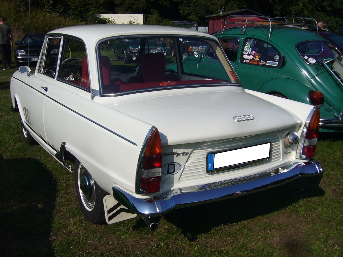 DKW F12, gebaut von 1963 bis 1965. Der F12 und sein spartanischer ausgestattetes Schwestermodell F11 waren die Nachfolger des DKW Junior. Während der F11 noch mit dem Motor des Junior de Luxe ausgestattet war, hatte der F12 serienmäßig einen Dreizylinderreihenzweitaktmotor mit einem Hubraum von 889 cm³ unter der Motorhaube. Dieser leistet 40 PS und verhilft dem F12 zu einer Höchstgeschwindigkeit von 124 km/h. Oldtimertreffen auf dem Gelände des Bikertreffs Mutter Vogel in Marl am 28.09.2025.