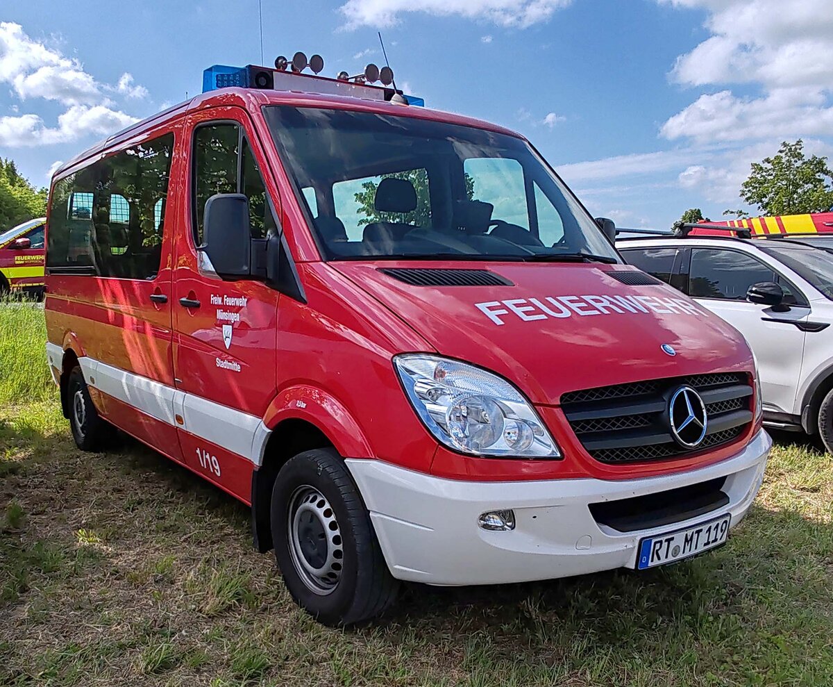 =MB Sprinter als MTW der Feuerwehr MÜNSINGEN, steht auf dem Parkplatz der 2025er Rettmobil in Fulda