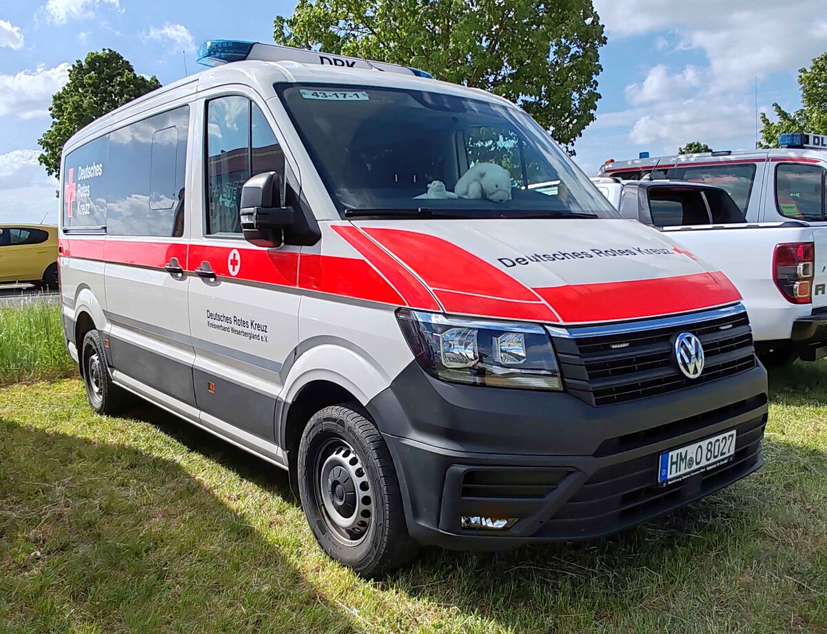=VW Crafter II des DRK KV WESERBERGLAND, steht auf dem Parkplatz der 2025er Rettmobil in Fulda