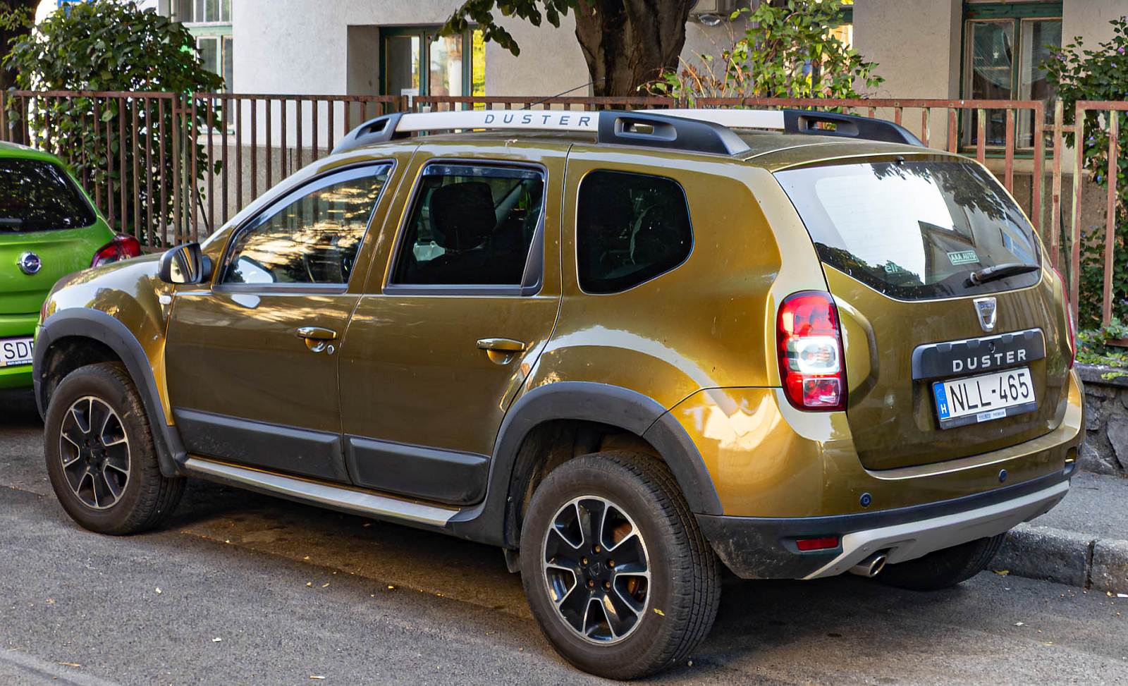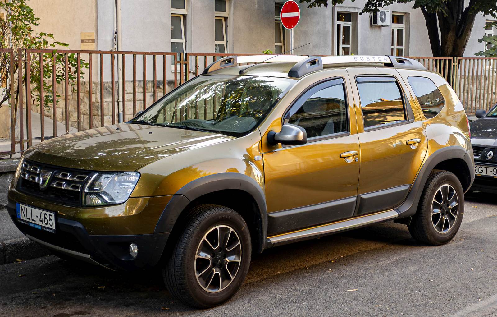 Hier ist ein Dacia Duster Mk1 in der Lackierung "Vert Altai" zu sehen. Foto: 09.2025.