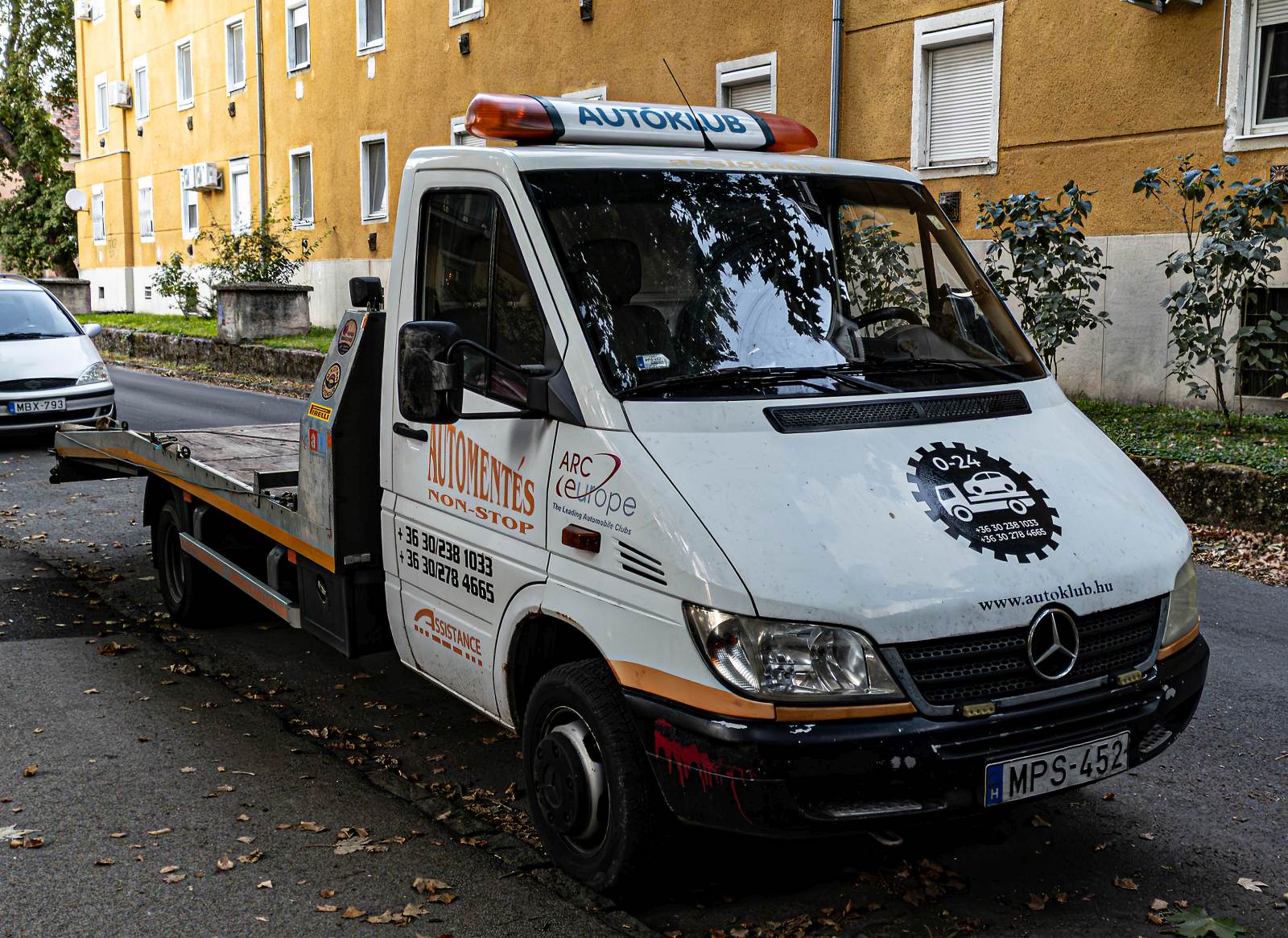 Hier ist ein Mercedes-Benz Sprinter Abschlepper aus der ersten Generation (Facelift) zu sehen. Foto: 09.2025.