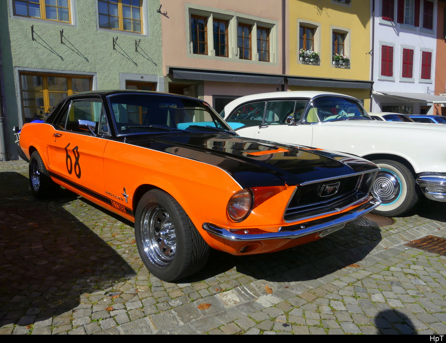 Orange/Schwarzer Ford Mustang zu Besuch in Büren an der Aare am Oldtimertreffen am 07.09.2025